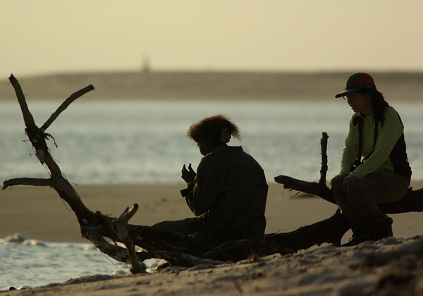 写真はガボン西海岸の砂浜で現地女性と世間話に興じる博物館理事。女性同士の気安さがあるとは言え、初対面の人間から、薬草を使った男の操縦方法まで聞き出す能力は天才的。