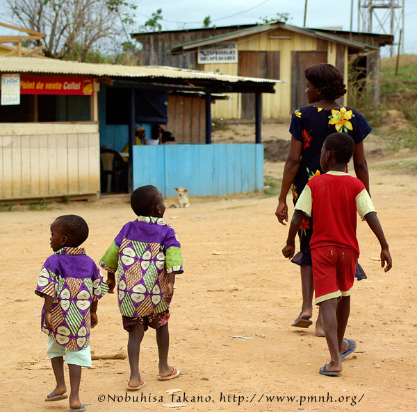 写真はロペ村の若奥さんとその息子達。簡素な着物だけど、やっぱりそれぞれにカッコいいのだった。