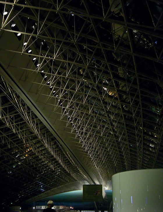 写真はパリの CDG空港、確か前に屋根が崩落したあたりの現況。こういうのを見てから成田に帰ると、病院のような、学校のようなハコにがっかりである。相変わらず放送や案内はうるさいし、免税店は海外のブランド物ばかり。確かに、とんがった部分を全部削り落としていくと、ああいう無味無臭の消毒済みのようなハコになるのであろう。