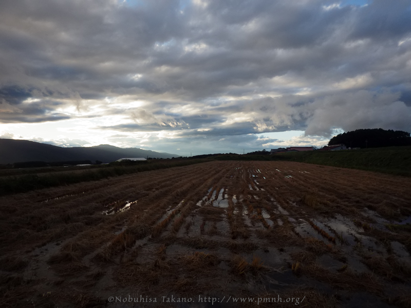 生き物はすっかり寂しくなって、簡潔に言えば、リス、留鳥、トンボ、バッタ、ハチ、ハエ。というところだ。晴れれば、わづかに残っている野菊に、かっこいいメバエとか、狩人蜂とかがしがみついていて、日向にトンボやバッタが群れる。だから僕も、背中に陽光を浴びて、じっくり腰を下ろして一匹一匹と相対した。背後でカケスとヒヨドリがやたらうるさい。